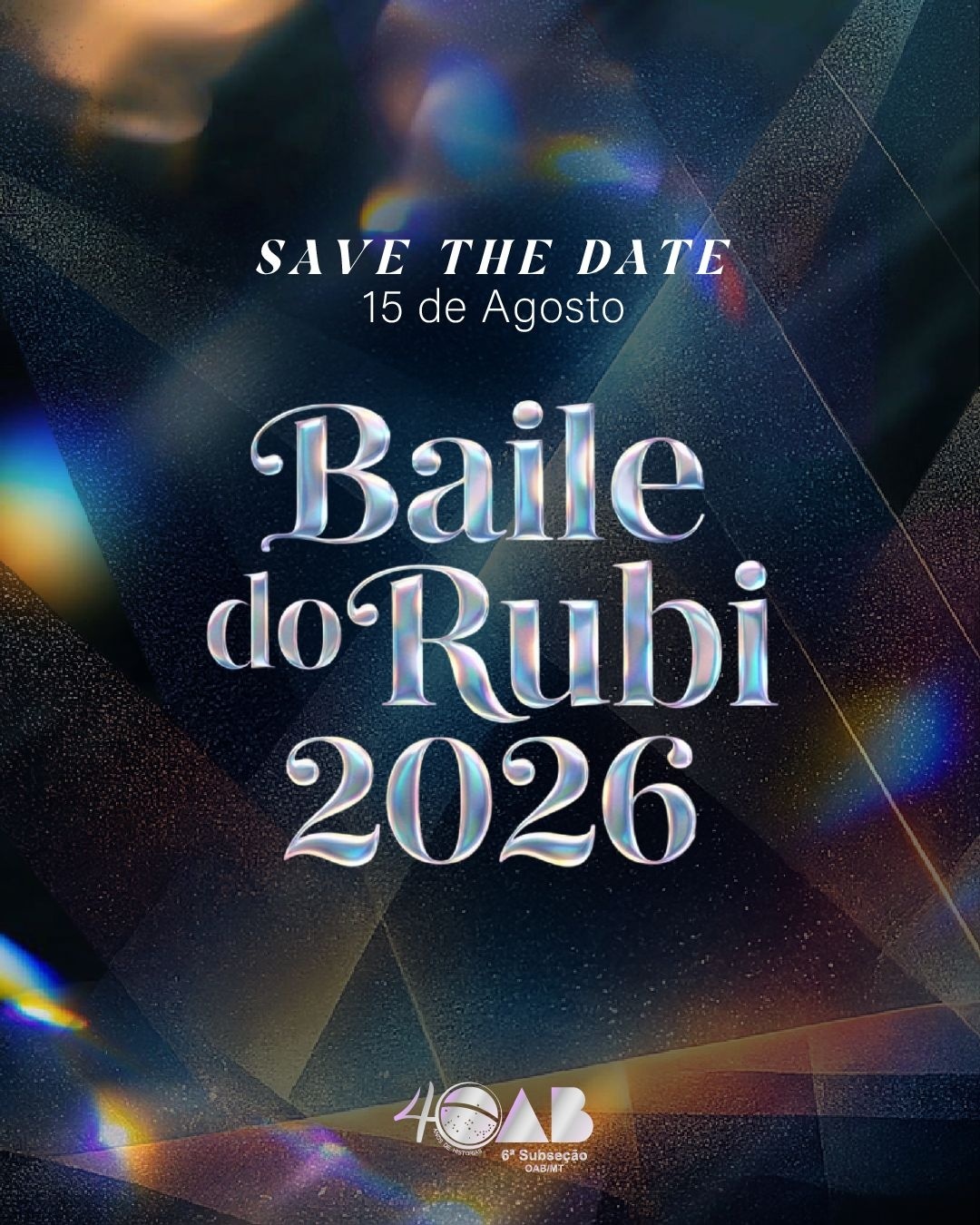 A OAB Sinop realizará, no dia 15 de agosto, a edição 2026 do tradicional Baile do Rubi. Neste ano, o evento ganha um significado ainda mais especial ao celebrar os 40 anos de fundação da subseção. A expectativa é reunir a advocacia, autoridades e representantes da sociedade em uma noite marcada por reconhecimento, integração e celebração.