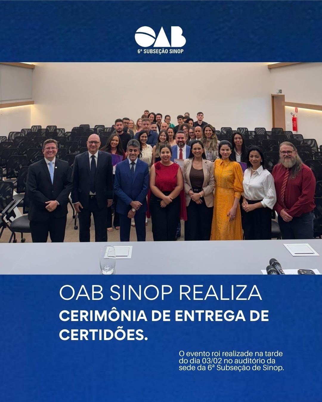 Mais do que a entrega de um documento, o evento representou o início de uma nova fase, repleta de desafios, aprendizados e conquistas. A OAB Sinop reafirma, por meio dessa solenidade, seu papel institucional de acolher, orientar e fortalecer os profissionais que passam a construir diariamente a advocacia em nossa região.