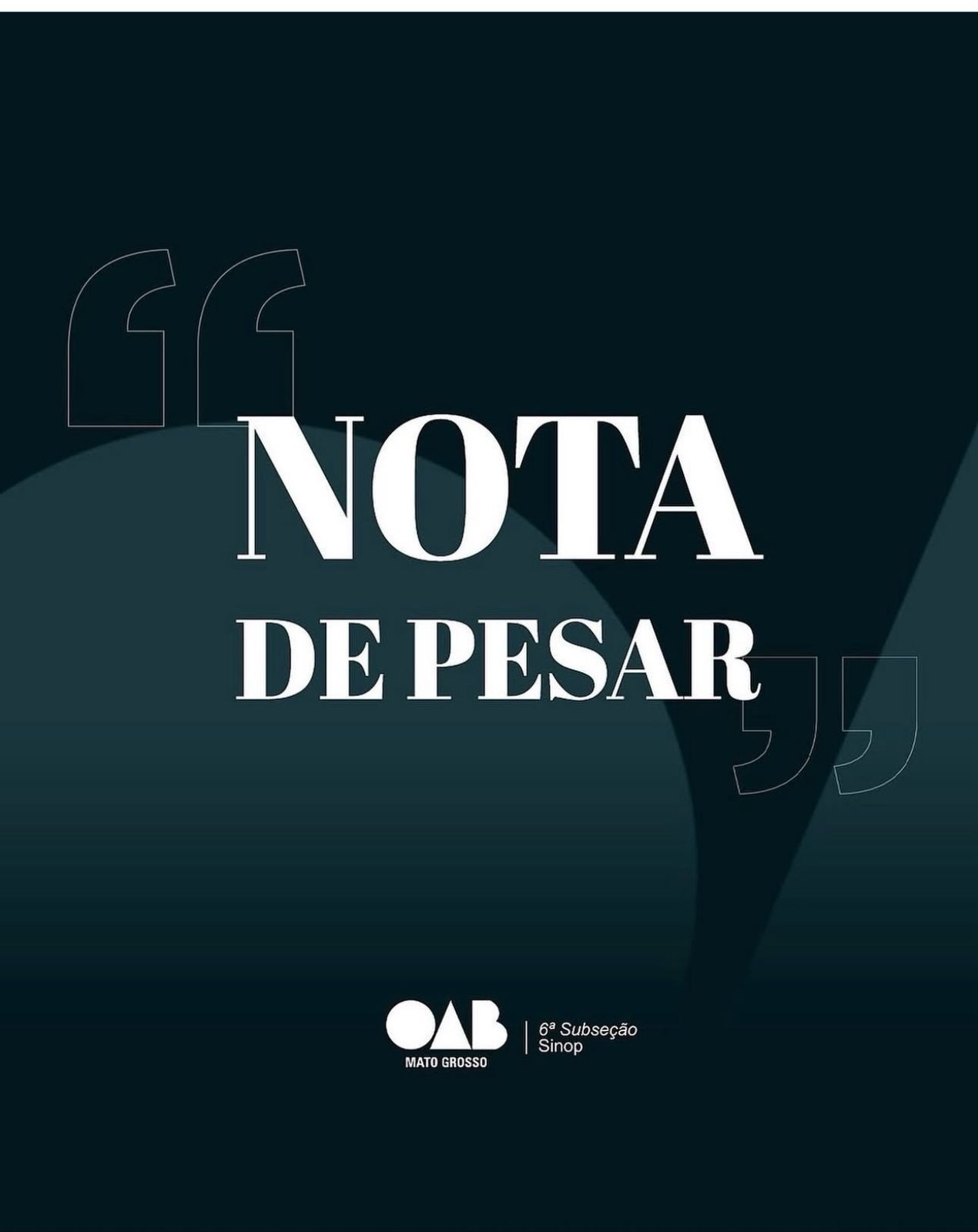 Neste momento de dor, a OAB Sinop expressam suas mais sinceras condolências aos familiares, amigos e, em especial, aos advogados Daniel, Marly, Gilvam e Mayara, desejando conforto, força e serenidade para enfrentar esta perda irreparável.