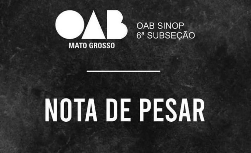 A Ordem dos Advogados do Brasil, 6ª Subseção de Sinop, lamenta profundamente o falecimento da Sra. Noeli Vargas Juelg, mãe das advogadas Saionara Juelg, vice-presidente da Comissão de Direito Notarial, e Jaqueline Juelg, vice-presidente da Comissão de Meio Ambiente da OAB Sinop.